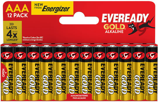 Αλκαλική μπαταρία Eveready Gold ΑΑA-LR03 1.5V, σε blister 12 τεμαχίων.