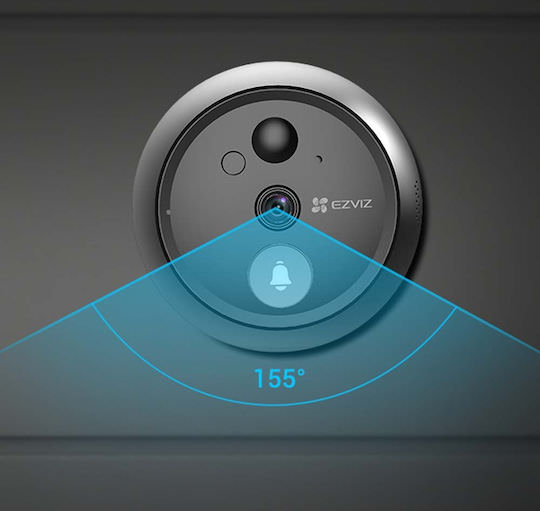 Υπερευρυγώνιος φακός 155°: Εξασφαλίζει ευρύ πεδίο θέασης, καλύπτοντας μεγαλύτερη περιοχή μπροστά από την πόρτα σας.Ζωντανή προβολή και αμφίδρομη βιντεοκλήση: Σας επιτρέπει να βλέπετε και να επικοινωνείτε με τους επισκέπτες σας σε πραγματικό χρόνο μέσω της εφαρμογής EZVIZ.