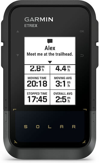 Η Garmin eTrex Solar είναι μια πολυλειτουργική, ηλιακής ενέργειας φορητή συσκευή GPS, σχεδιασμένη ειδικά για τους λάτρεις της υπαίθρου. Με προηγμένα χαρακτηριστικά πλοήγησης και εκτενή διάρκεια ζωής μπαταρίας, αποτελεί τον ιδανικό σύντροφο για δραστηριότητες όπως πεζοπορία, γεωθησαυρό και άλλα.