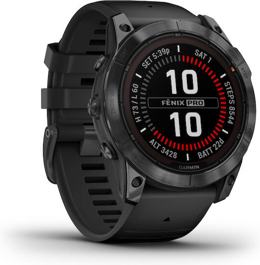 Garmin Fenix 7X Pro Solar Stainless Steel 51mm Αδιάβροχο Smartwatch με Παλμογράφο (Slate Grey with Black Band)