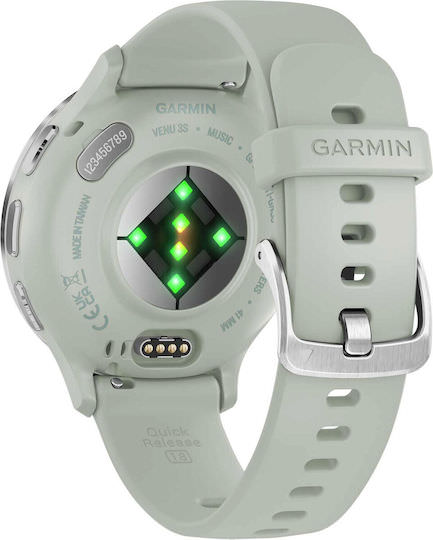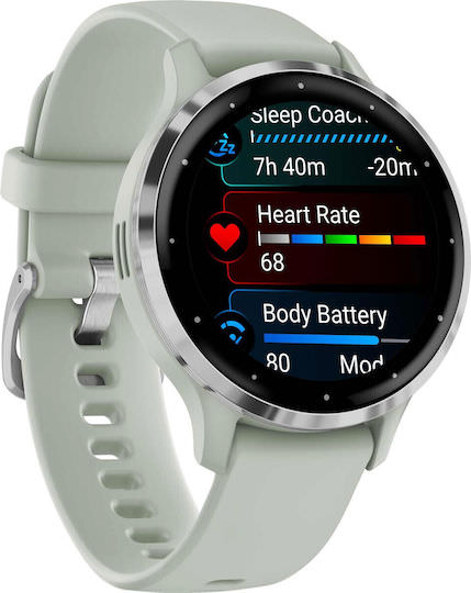 Garmin Venu 3S Stainless Steel 41mm Αδιάβροχο Smartwatch με Παλμογράφο (Silver Stainless Steel Bezel with Sage Gray Case and Silicone Band)