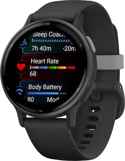 Garmin Vivoactive 5 Aluminium 42mm Αδιάβροχο Smartwatch με Παλμογράφο (Slate Bezel With Black Silicone Band)