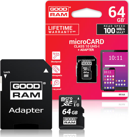 GoodRAM M1AA microSDXC 64GB Class 10 U1 UHS-I με αντάπτορα