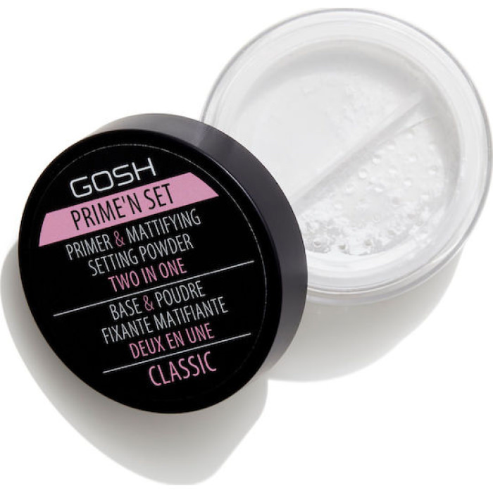 Η πούδρα σταθεροποίησης και λείανσης Gosh Prime’n Set προσφέρει ένα ματ φινίρισμα ενώ διορθώνει το μακιγιάζ και αφήνει την επιδερμίδα λεία και απαλή.