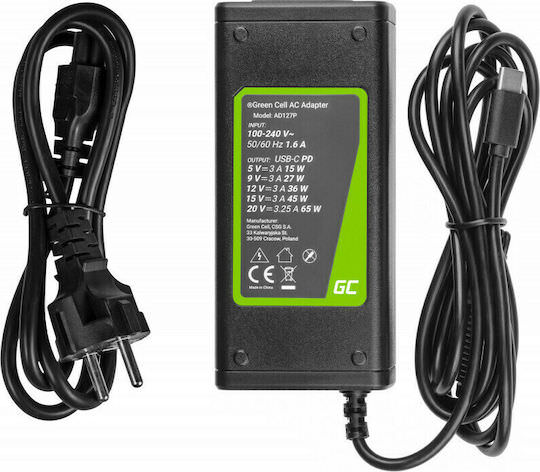 Green Cell Φορτιστής Laptop 65W 19.5V 3.34A για Dell με Αποσπώμενο Καλώδιο Τροφοδοσίας