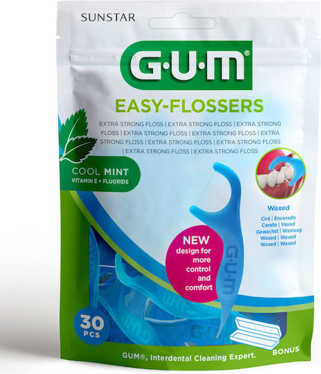 GUM Easy-Flossers Κερωμένο Οδοντικό Νήμα με Γεύση Μέντα και Λαβή σε Μπλε χρώμα 30τμχ