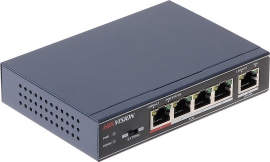Hikvision DS-3E0505P-E Unmanaged L2 PoE+ Switch με 4 Θύρες Gigabit (1Gbps) Ethernet