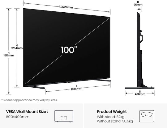 Hisense Smart Τηλεόραση 100″ 4K UHD QLED E7Q Pro HDR (2025) 20016384