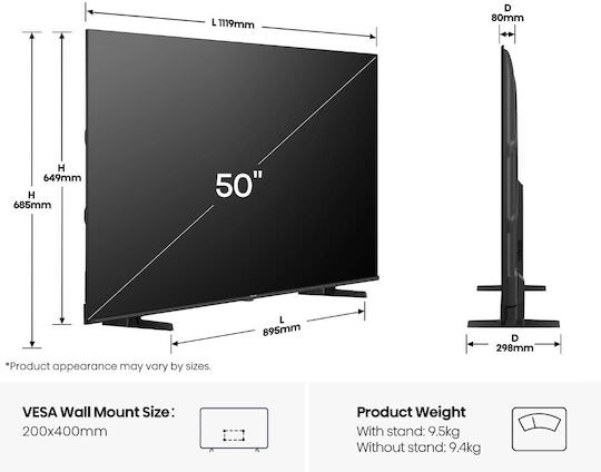 – Διαγώνιος: 50 ίντσες