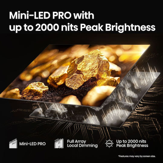 Αυτή η τηλεόραση συνδυάζει την τελευταίας τεχνολογίας Mini LED τεχνολογία με μια εντυπωσιακή διαγώνιο οθόνης 65 ιντσών για να προσφέρει μια εξαιρετική εμπειρία θέασης. Η ποιότητα της εικόνας είναι 4K Ultra HD, με ανάλυση 3840×2160, που σημαίνει ότι μπορείς να απολαύσεις το αγαπημένο σου περιεχόμενο με απίστευτη ευκρίνεια.