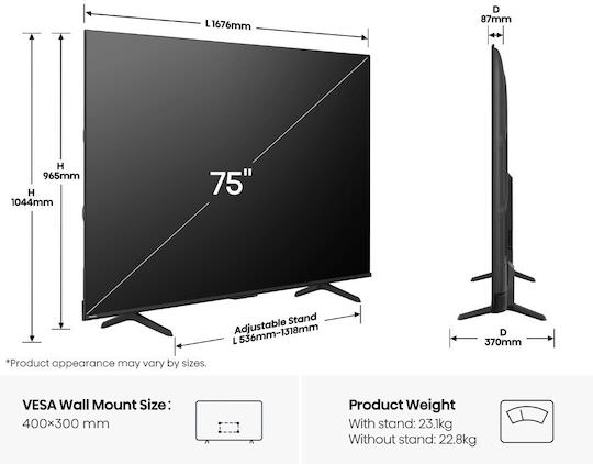 – Διαγώνιος: 75 ”