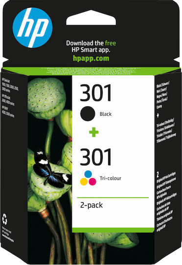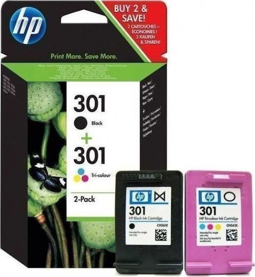 HP 301 Γνήσιο Πακέτο 2 Μελανιών Εκτυπωτή InkJet Πολλαπλό (Color) / Μαύρο (N9J72AE)