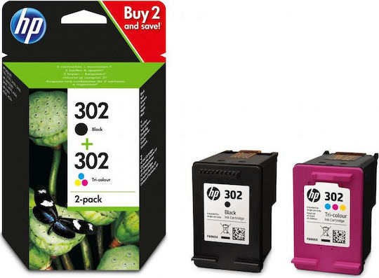 HP 302 Γνήσιο Πακέτο 2 Μελανιών Εκτυπωτή InkJet Μαύρο (X4D37AE)