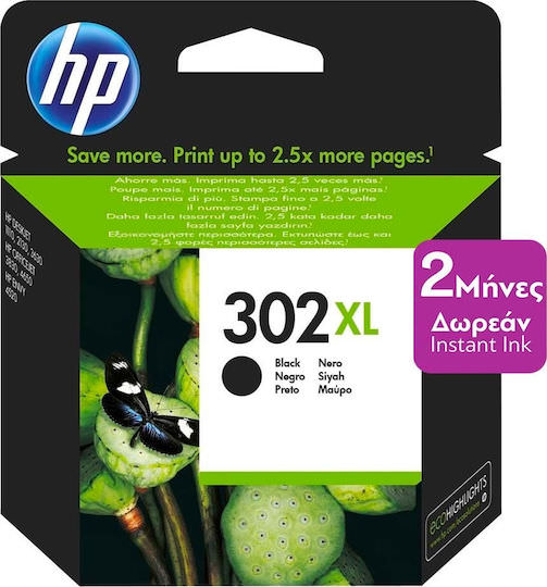 HP 302XL Γνήσιο Μελάνι Εκτυπωτή InkJet Μαύρο (F6U68AE)