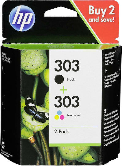 HP 303 Γνήσιο Πακέτο 2 Μελανιών Εκτυπωτή InkJet Πολλαπλό (Color) / Μαύρο (3YM92AE)