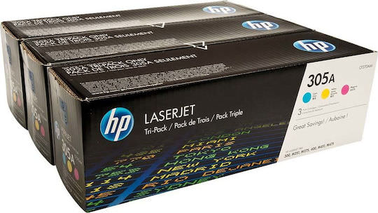 HP 305A Γνήσιο Multipack Toner Laser Εκτυπωτή Κυανό/Κίτρινο/Ματζέντα 3τμχ CF370AM