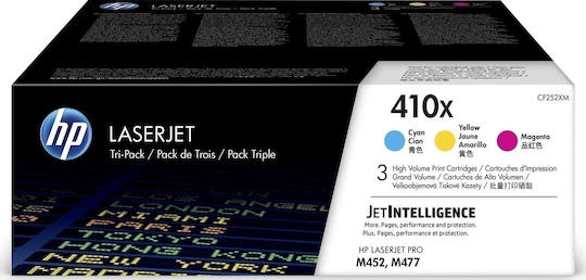 HP 410X Γνήσιο Multipack Toner Laser Εκτυπωτή Κίτρινο/Κυανό/Ματζέντα High Yield 3τμχ CF252XM
