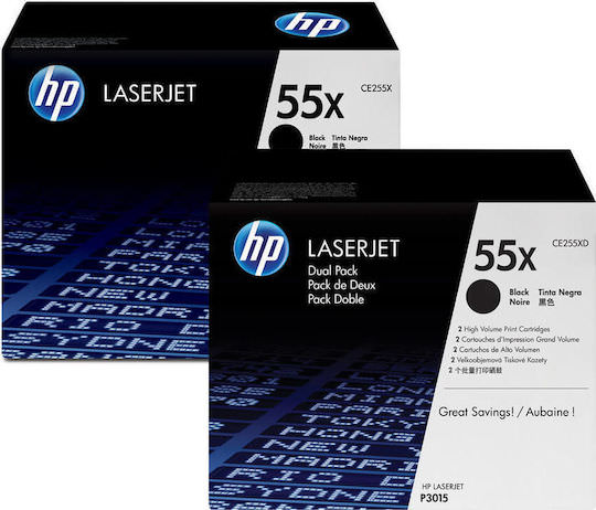 HP 55X Γνήσιο Multipack Toner Laser Εκτυπωτή Μαύρο High Yield 2τμχ (CE255XD)