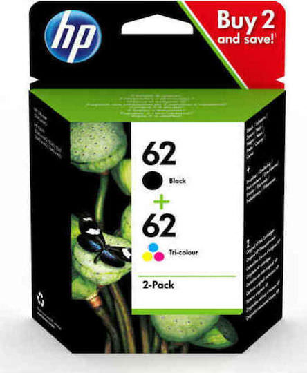HP 62 Γνήσιο Πακέτο 2 Μελανιών Εκτυπωτή InkJet Πολλαπλό (Color) / Μαύρο (N9J71AE)