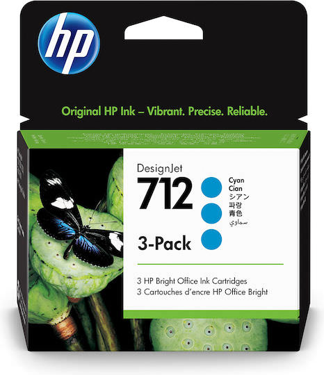 HP 712 Γνήσιο Πακέτο 3 Μελανιών Εκτυπωτή InkJet Κυανό (3ED77A)