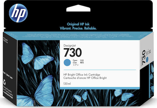 HP 730 Γνήσιο Μελάνι Εκτυπωτή InkJet Κυανό (P2V62A)