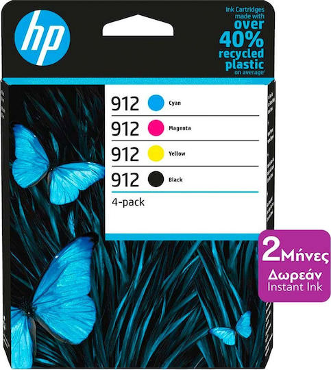 HP 912 Γνήσιο Πακέτο 4 Μελανιών Εκτυπωτή InkJet Κίτρινο / Κυανό / Ματζέντα / Μαύρο (6ZC74AE)