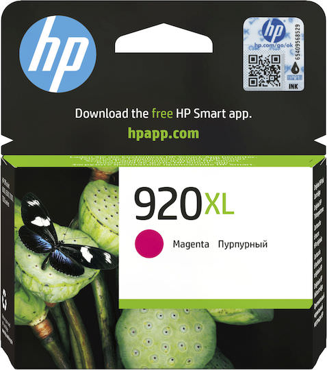 HP 920XL High Yield Magenta Γνήσιο Δοχείο Μελάνης. Εκτυπώστε επαγγελματικά έγχρωμα έγγραφα με έως 40% χαμηλότερο κόστος από αυτό των laser, χρησιμοποιώντας αυθεντικές μελάνες HP. Τα μεμονωμένα δοχεία μελάνης επιτρέπουν την οικονομική εκτύπωση. Πετύχετε εντυπωσιακά αποτελέσματα εκτύπωσης. Αυτές οι αυθεντικές μελάνες HP έχουν ειδική σύνθεση ώστε να παράγουν έγγραφα που στεγνώνουν γρήγορα, ειδικά όταν χρησιμοποιείτε χαρτιά με το λογότυπο ColorLok. Η τεχνολογία HP διευκολύνει την αντικατάσταση των δοχείων. Χρησιμοποιήστε τις εξυπηρετικές ειδοποιήσεις μελάνης για εύκολη αγορά αναλωσίμων με το HP SureSupply.