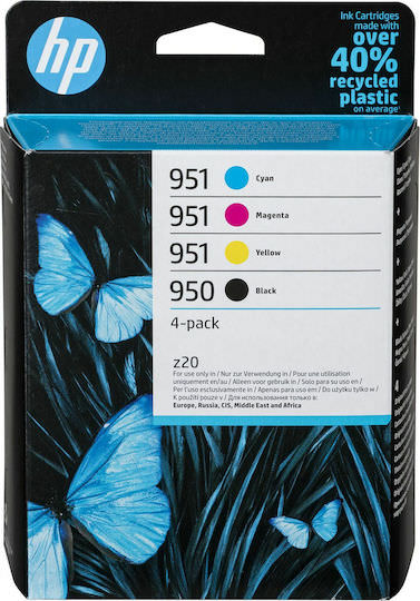 HP 950/951 Γνήσιο Πακέτο 4 Μελανιών Εκτυπωτή InkJet Κίτρινο / Κυανό / Ματζέντα / Μαύρο (6ZC65AE)