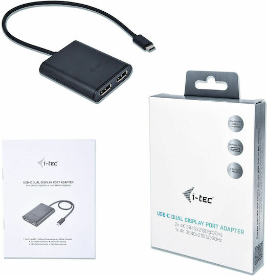 i-tec Μετατροπέας USB-C male σε DisplayPort 2x female 1τμχ C31DUAL4KDP