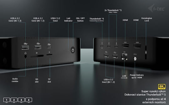 i-tec Thunderbolt 5 Docking Station με HDMI 4K PD Ethernet και σύνδεση 4 Οθονών Μαύρο (TB5QUATTRODOCKPD)