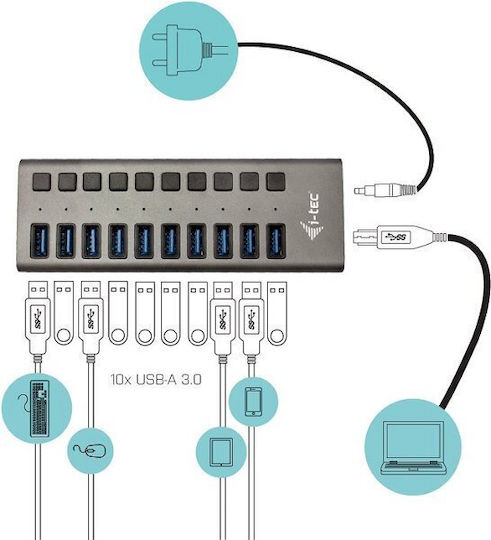 i-tec USB 3.0 Hub 10 Θυρών με σύνδεση USB-A & Θύρα Φόρτισης και Εξωτερική Παροχή Ρεύματος