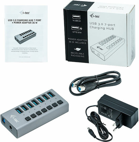 i-tec USB 3.0 Hub 7 Θυρών με σύνδεση USB-A & Θύρα Φόρτισης και Εξωτερική Παροχή Ρεύματος