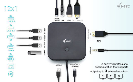 i-tec USB-C Docking Station με HDMI/DisplayPort 4K PD Ethernet και συνδεση 3 Οθονών Μαύρο (C31TRI4KDPDPRO100)