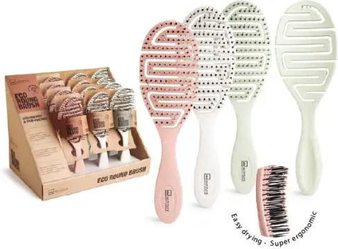 IDC Eco Round Hair Brush Easy Detangling Βούρτσα Μαλλιών Εύκαμπτη 100% ανακυκλώσιμη 110gr White