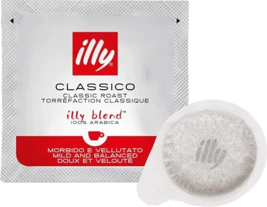 Χάρτινες κάψουλες E.S.E. Pod illy Classico συσκευασμένες υπό πίεση. Ήπια γεύση με διακριτικές νότες από καραμέλα, σοκολάτα και ελαφρύ άρωμα λουλουδιών. Περιέχουν αυθεντικό χαρμάνι από 9 διαφορετικές ποικιλίες καφέ Arabica