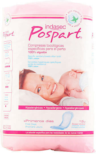 Indasec Pospart Σερβιέτες Λοχείας με Φτερά 12τμχ