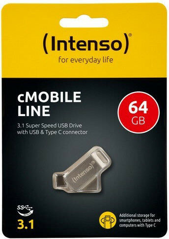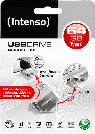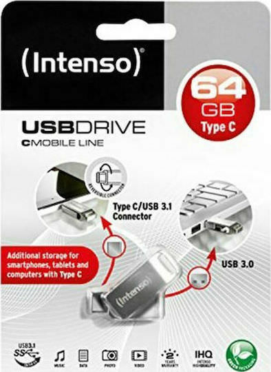 Intenso cMobile Line 64GB USB 3.1 Stick με σύνδεση USB-C & USB-A Ασημί