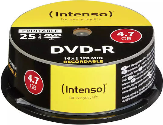 Intenso Εγγράψιμα DVD-R 16x 4.7GB Cake Box 25τμχ