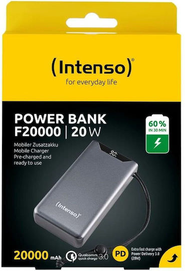 Intenso F20000 Power Bank 20000mAh με Θύρα USB-A και Θύρα USB-C Power Delivery / Quick Charge 3.0 Γκρι