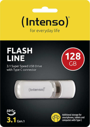 Intenso Flash Line 128GB USB 3.1 Stick με σύνδεση USB-C Λευκό