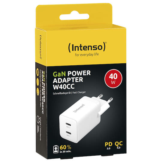 Intenso Φορτιστής Χωρίς Καλώδιο GaN με 2 Θύρες USB-C 40W Λευκός (W40CC)