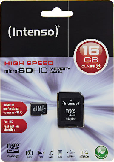Intenso microSDHC 16GB Class 10 High Speed με αντάπτορα