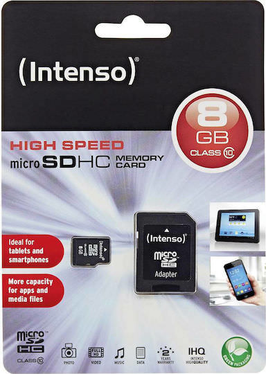 Intenso microSDHC 8GB Class 10 High Speed με αντάπτορα