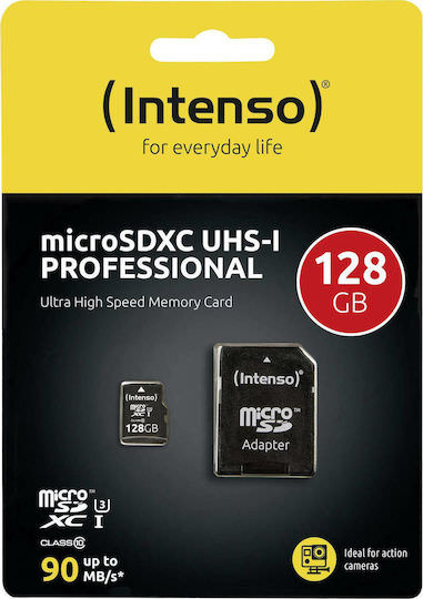 Intenso Professional microSDXC 128GB Class 10 U3 UHS-I με αντάπτορα