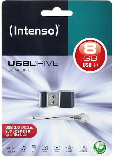 Intenso Slim Line 8GB USB 3.0 Stick Μαύρο
