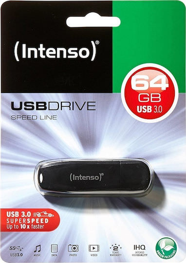 Intenso Speed Line 64GB USB 3.0 Stick Μαύρο