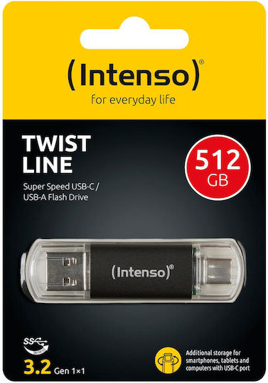 Intenso Twist Line 512GB USB 3.2 Stick με σύνδεση USB-C & USB-A Μαύρο
