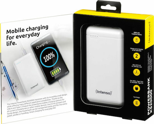 Intenso XS Power Bank 20000mAh με Θύρα USB-A και Θύρα USB-C Λευκό