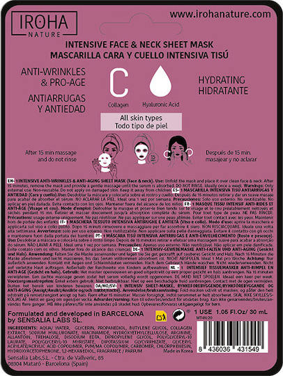 Μάσκα προσώπου Iroha Nature κατά των ρυτίδων με κολλαγόνο και υαλουρονικό οξύ, ιδανική για σύσφιξη και αντιγήρανση. Ενυδατώνει σε βάθος, λειαίνει και χαρίζει ομοιόμορφο τόνο στο δέρμα.
