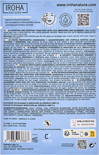 Iroha Nature Blueberry Pads Τόνωσης Προσώπου για Όλους τους Τύπους 10x25ml